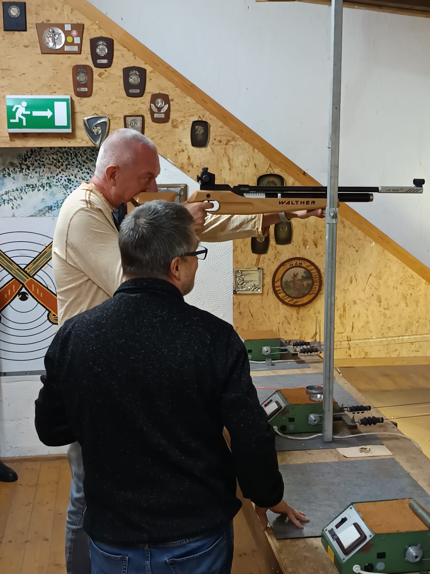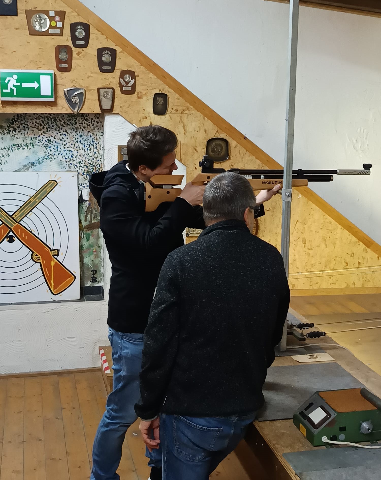 Ein besonderes Highlight des Abends war das Preisschießen. Dabei durften die Teilnehmer mit dem Luftgewehr auf 10 Meter entfernte, umgedrehte Scheiben schießen. Da keine Ringzahlen gezielt anvisiert werden konnten, waren Glück und ein wenig Geschick entscheidend, um ein hohes Ergebnis zu erzielen.